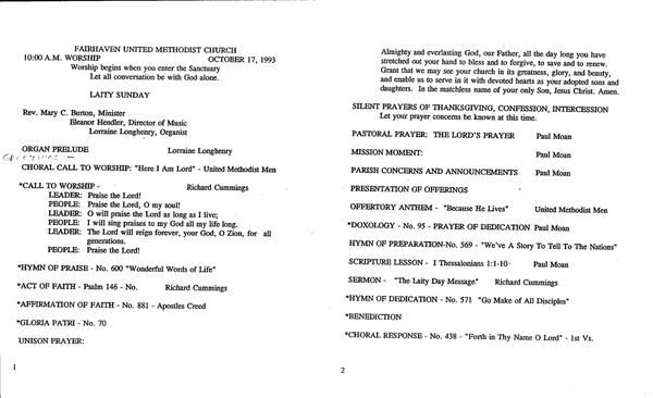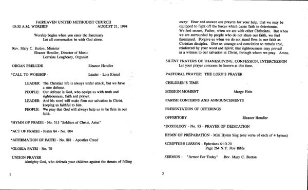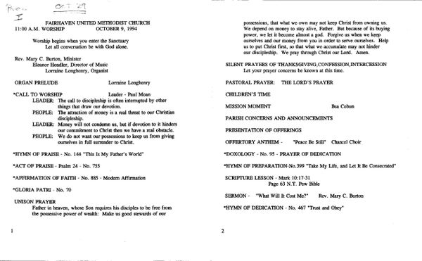 - Sunday Bulletins 1980-95